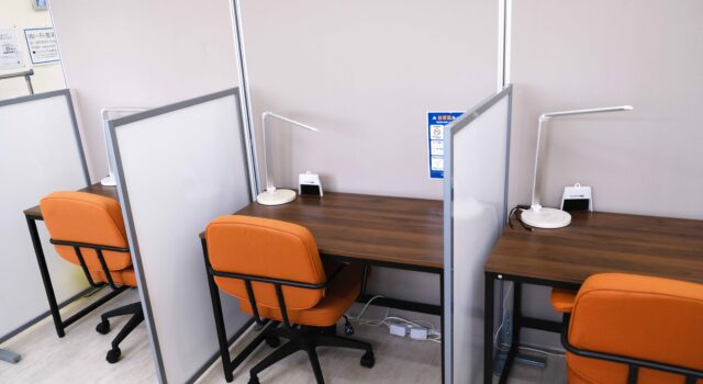 空いているデスクを自由に使うことができます。デスクとデスクの間にも仕切り板があるので、おとなりを気にせず集中して勉強できます。